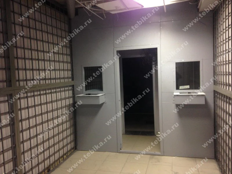 5) Кассовые кабины и узлы. Включают пулестойкое стекло и дверь, бронеэкран с передаточным лотком, переговорное отверстие, инкассаторский шлюз. Стены, пол, потолок укреплены бронепанелями. Такие бронированные модульные конструкции крепятся с помощью болтовых или сварных соединений.